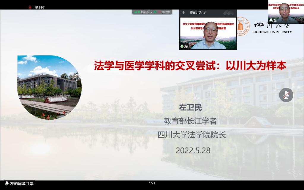 教育部高等学校法学类专业教学指导委员会委员、四川大学法学院院长、长江学者左卫民教授——"法学教育与医学教育的交叉尝试:以川大试验为出发点"