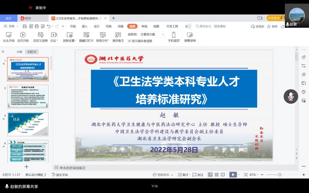 湖北中医药大学赵敏教授——"卫生法学类本科专业人才培养标准研究"