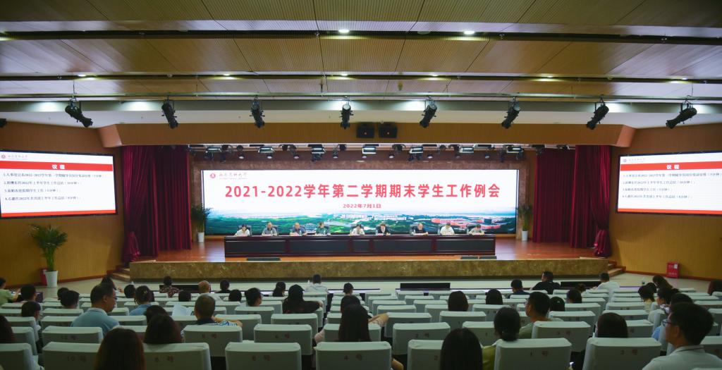 7月1日上午,2021-2022学年第二学期期末学生工作例会在城北校区第一学术报告厅召开。学校党委副书记刘毅出席会议并讲话,人事处、武装保卫处、基建后勤处等部门相关领导,学生工作部、团委全体人员以及全体专兼职辅导员(含分管学生工作领导、新进脱产辅导员、辅导员助理)共计100余人参加会议。会议由学生工作部部长谭群英主持。