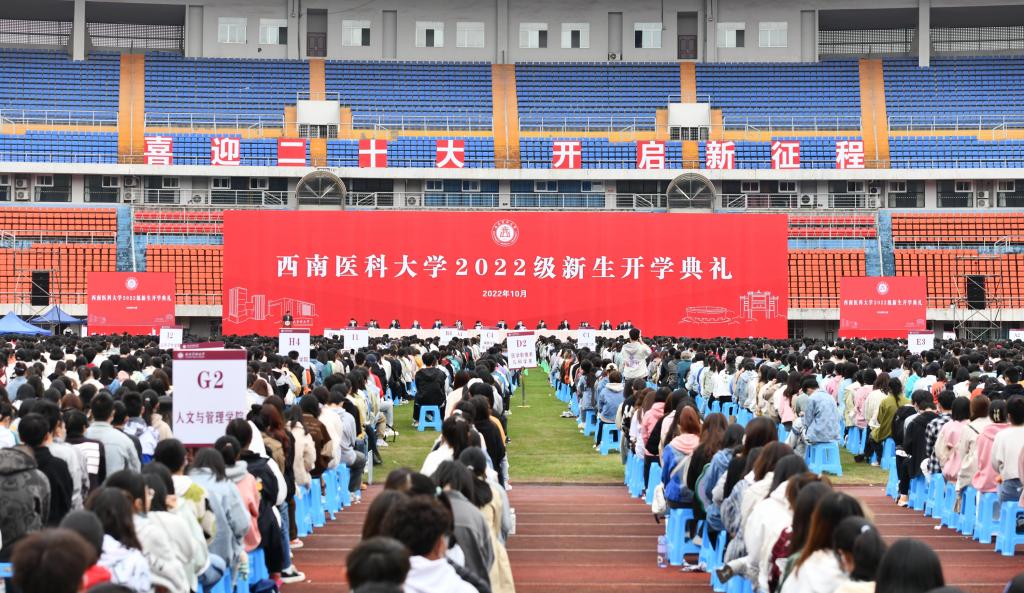 10月10日,2022级新生开学典礼在城北校区奥体中心主体育场举行。校领导廖斌、张春祥、李尚志、彭钢、何涛、聂敏海、代荣阳,相关职能部门主要负责人,二级院(系)主要负责人、分管学生工作负责人,教师、校友、在校生代表、新生辅导员以及2022级全体新生出席典礼。典礼由学校党委副书记、纪委书记李尚志主持。