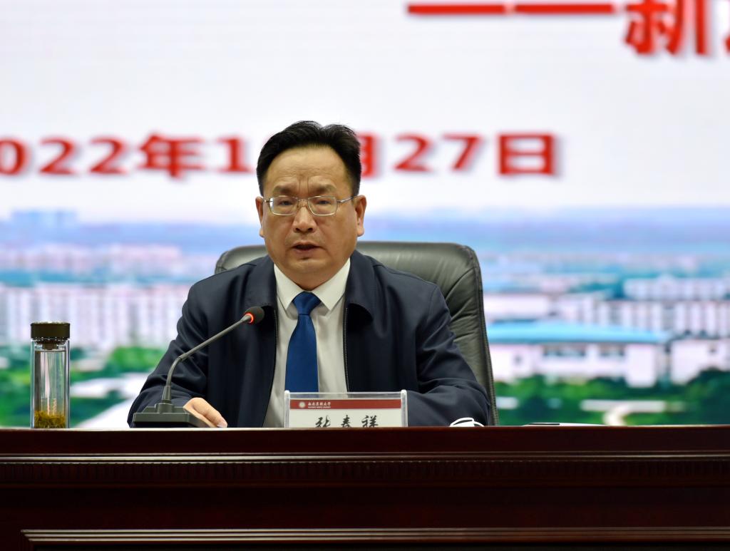 张春祥代表学校对全体新进教职工表示欢迎,感谢新进教职工为学校事业注入新活力新动能,同时也表示学校将竭尽全力为大家搭建干事创业的发展平台。他对新进教职工提出三点希望:一是希望不忘立德树人初心,做为党育人、为国育才践行者;二是希望潜心钻研、精益求精,做学校内涵式高质量发展建设者;三是希望精诚团结、爱校荣校,做和谐美好校园守护者。