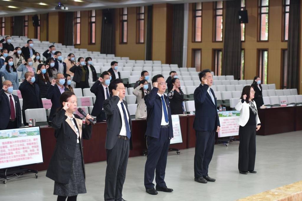 10月27日上午,由学校教师工作部•人事处、工会、教育评价与教师发展中心联合承办的2022年新进教职工入职入会岗前培训开训仪式在城北校区第一学术报告厅举行。学校党委书记廖斌,党委副书记、校长张春祥,党委副书记、工会主席刘毅,党委常委、副校长彭钢出席仪式。相关职能部门负责人、新进教职工以及其所在的二级单位(部门)负责人等近100人参加。仪式由彭钢主持。