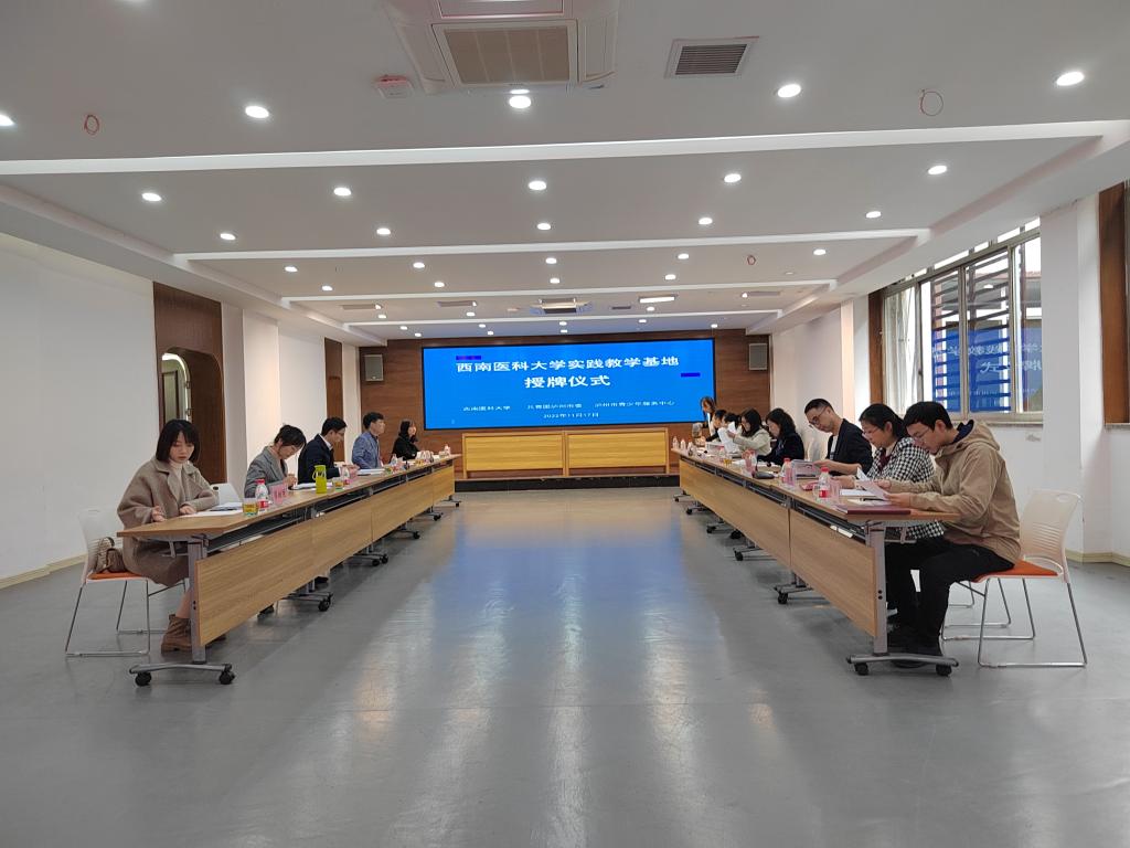为贯彻落实健康中国战略,提升kaiyun官网人才培养质量,拓宽kaiyun官网优质实践教学基地建设,11月17日,kaiyun官方网站入口党委常委、副校长何涛,教务处、人文与管理学院相关负责人一行赴泸州市青少年服务中心开展实践教学基地授牌。共青团泸州市委书记陈波、泸州市青少年服务中心主任王东等出席了授牌仪式。