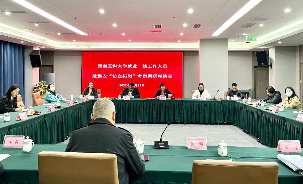 调研组一行抵达雅安后,连夜与雅安市委组织部、市卫健委、市教体局等相关部门召开考察调研座谈会,校地双方就人才供需对接机制、共促毕业生就业创业等进行深度沟通交流。