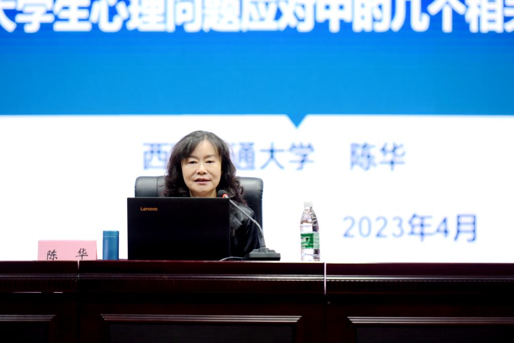 陈华教授以《大学生心理问题应对中的几个相关问题》为题做主题培训。她从我国大学生心理健康现状、对心理健康的几个认知的澄清和应对心理危机中需要注意的问题三个方面进行了讲解。在两个小时的培训中,陈华以扎实的心理知识和丰富的工作经验为基础,结合相关经典案例,清晰而系统地让与会人员更好的理解、识别、帮助心理问题学生,特别是有自杀风险的学生。她强调心理危机的识别、预防和处理是一个系统工程,需要各个层次有关机构和个人的共同努力。