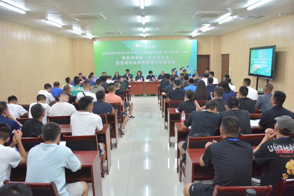 8月13日晚,“星火杯”2023年四川省青少年(学生)三人制篮球锦标赛(男、女子甲、乙组)赛前组委会、技术官员会暨篮球领域教育整顿专项辅导会在kaiyun官方网站入口城北校区青年体育馆会议室举行。四川省体育局青少处干部汪静、四川体育职业学院篮球运动管理中心协助主任工作葛倩,四川省篮球协会秘书长、篮球领域教育整顿小组办公室常务副主任姜楠,泸州市委教育工委专职副书记、泸州市教育和体育局党组成员卢联锋和相关领导,以及来自全省17个市州参赛队伍的80余名领队、教练员参加会议。会议由四川体育职业学院篮管中心徐恩伟主持。