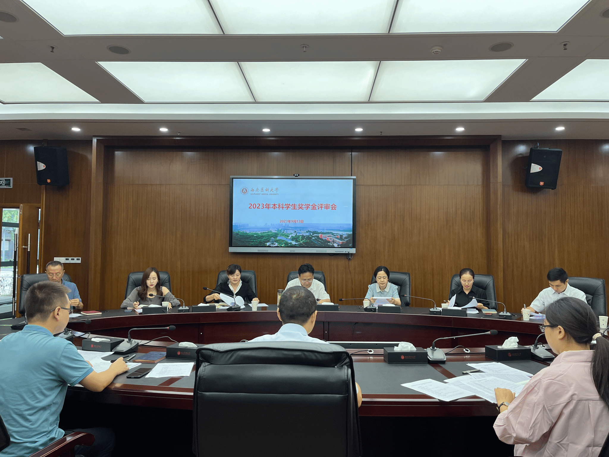 9月13日上午,学校在城北校区第一会议室召开2023年本科学生奖学金评审会。校党委副书记、校长、学生奖励评审工作领导小组组长张春祥,校党委副书记、学生奖励评审工作领导小组副组长刘毅,学生奖励评审工作领导小组全体成员参加了评审会。会议由学生资助管理中心主任谭群英主持。