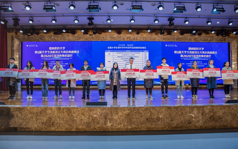 随后,与会领导依次为学校第五届大学生双创大赛、“互联网+”省赛、“挑战杯”省赛获奖项目和国家直属协会金奖项目等36个项目颁奖,发放奖励19.41万元,优秀项目代表分别进行了作品展示。