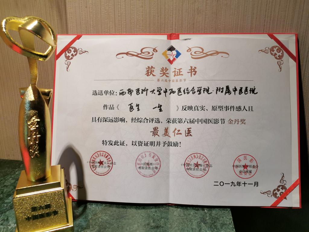 临床医学院·附属医院微电影《绘声》,荣获第六届金丹奖微电影“最佳品牌示范奖”。 中西医结合学院·附属中医医院作品孙同郊教授纪录片《医生一生》荣获“最美仁医奖”;脑梗防治微电影《脑洞大开》荣获“优秀作品”;精准扶贫微电影《瓜蒌花开》荣获“最佳社会公益奖TOP10”。