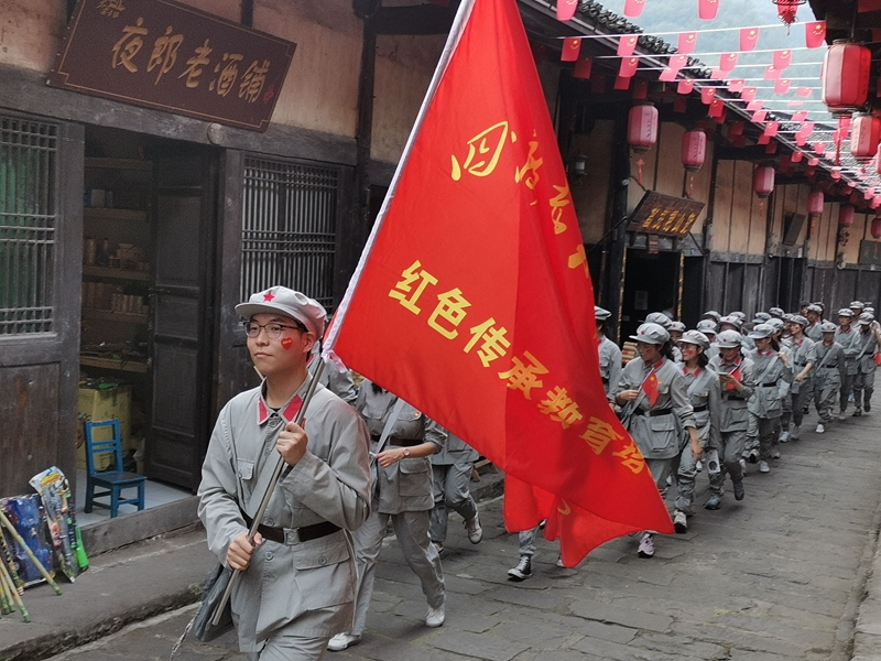 同时,当天早上7:00,学校“青马工程”第一期卓越人才班37人赴泸州市太平古镇开展了红色教育活动。校团委副书记刘玲爽、马克思主义学院思政课教师彭鎏佳带领“青马工程”学员们,看直播、听党课、参观革命历史古迹,重走长征路,回顾党的光辉历史,共庆新中国七十华诞。