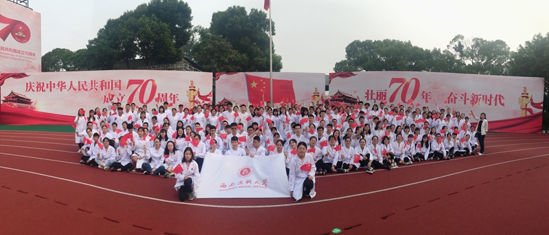 上午8:30,学校组织200名学生参加了泸州市庆祝中华人民共和国成立70周年升国旗仪式。西南医大学子身穿白大褂,与3000余名泸州社会各界代表齐聚四川警察学院足球场,唱红歌、升国旗,共同祝愿伟大的祖国生日快乐、祖国的未来更加繁荣昌盛。
