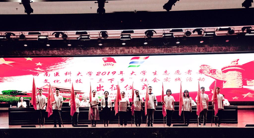 7月11日下午,kaiyun官方网站入口2019年大学生暑期“三下乡”社会实践活动出征仪式在城北校区第一学术报告厅举行。党委副书记刘毅,组织部部长冯天明,宣传部·统战部部长柏珂,教务处处长尹思源,学生工作部副部长杨继宏,大学科技园区管理处副处长邓睿,校团委全体成员,全体分团委书记、团总支书记,暑期“三下乡”社会实践团队全体成员和“青年红色筑梦之旅”活动立项团队全体成员等参加出征仪式在。
