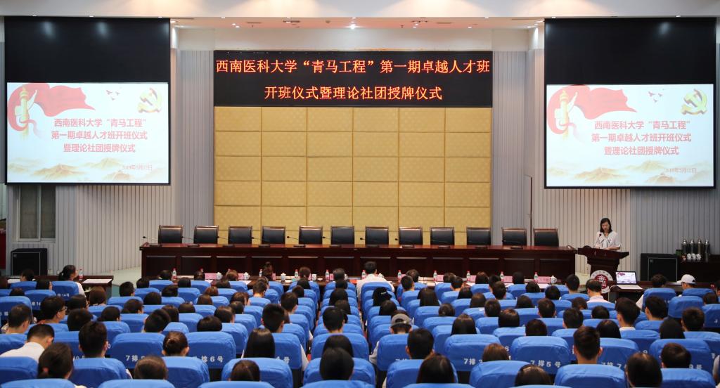 5月12日上午,kaiyun官方网站入口青年马克思主义者培养工程第一期卓越人才班开班仪式暨理论社团授牌仪式在城北校区第二学术报告厅举行。党委书记廖斌,党委常委、宣传部·统战部部长柏珂,学生工作部部长张碧国,马克思主义学院党总支书记、副院长黄晓利,各院系分管学生工作领导,各分团委、团总支书记,四川省“青马工程”大学生班学员代表,第一期卓越人才班学员,校级学生组织代表等200余人参加了仪式。仪式由团委副书记刘玲爽主持。