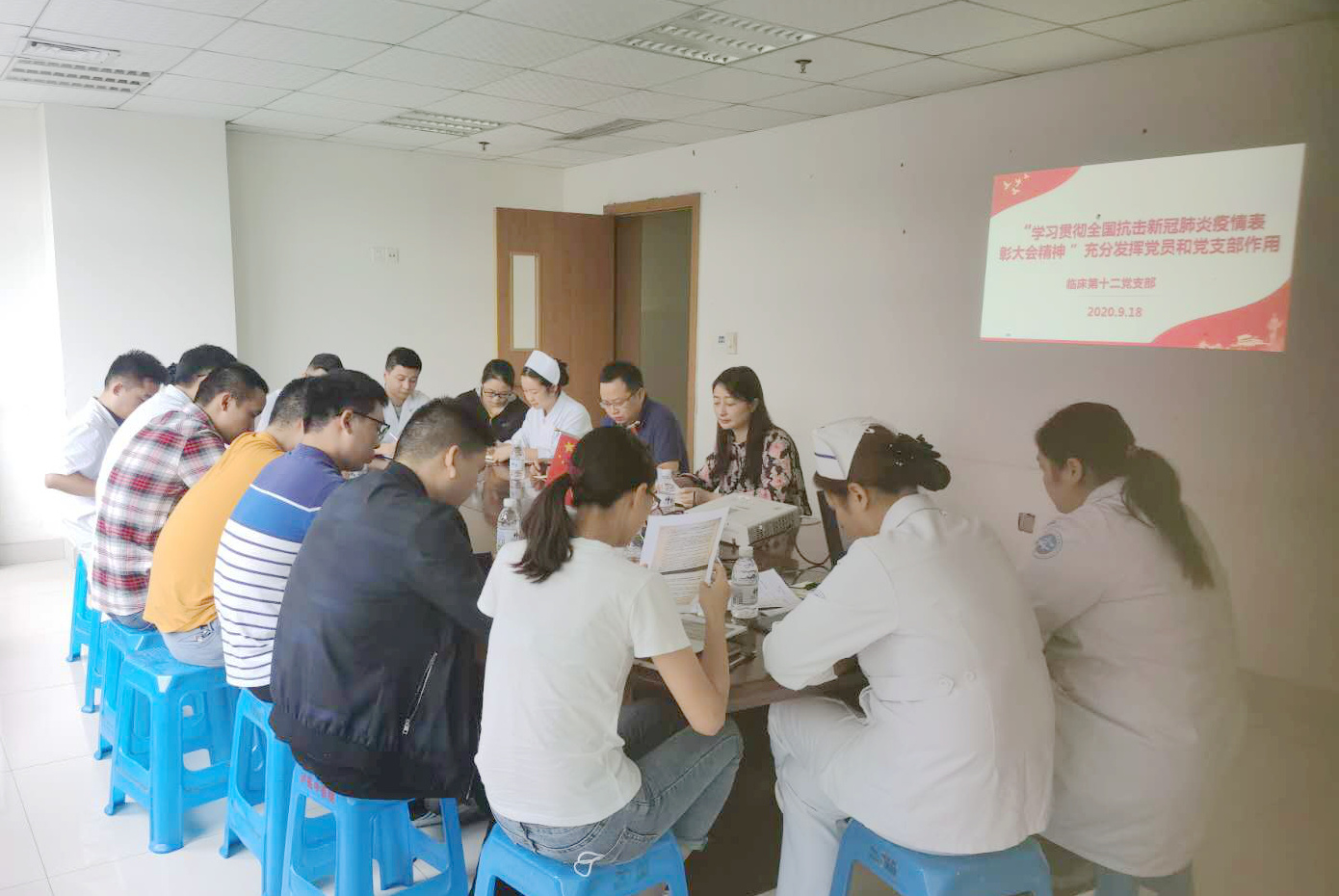 9月18日,kaiyun官方网站入口附属中医医院临床第十二党支部开展了“学习贯彻全国抗击新冠肺炎疫情表彰大会精神 充分发挥党员和党支部作用”主题党日活动。附属中医医院党委副书记•纪委书记徐茜,临床第十二党支部全体党员、预备党员参加了会议。会议由该支部书记郭伍斌主持。