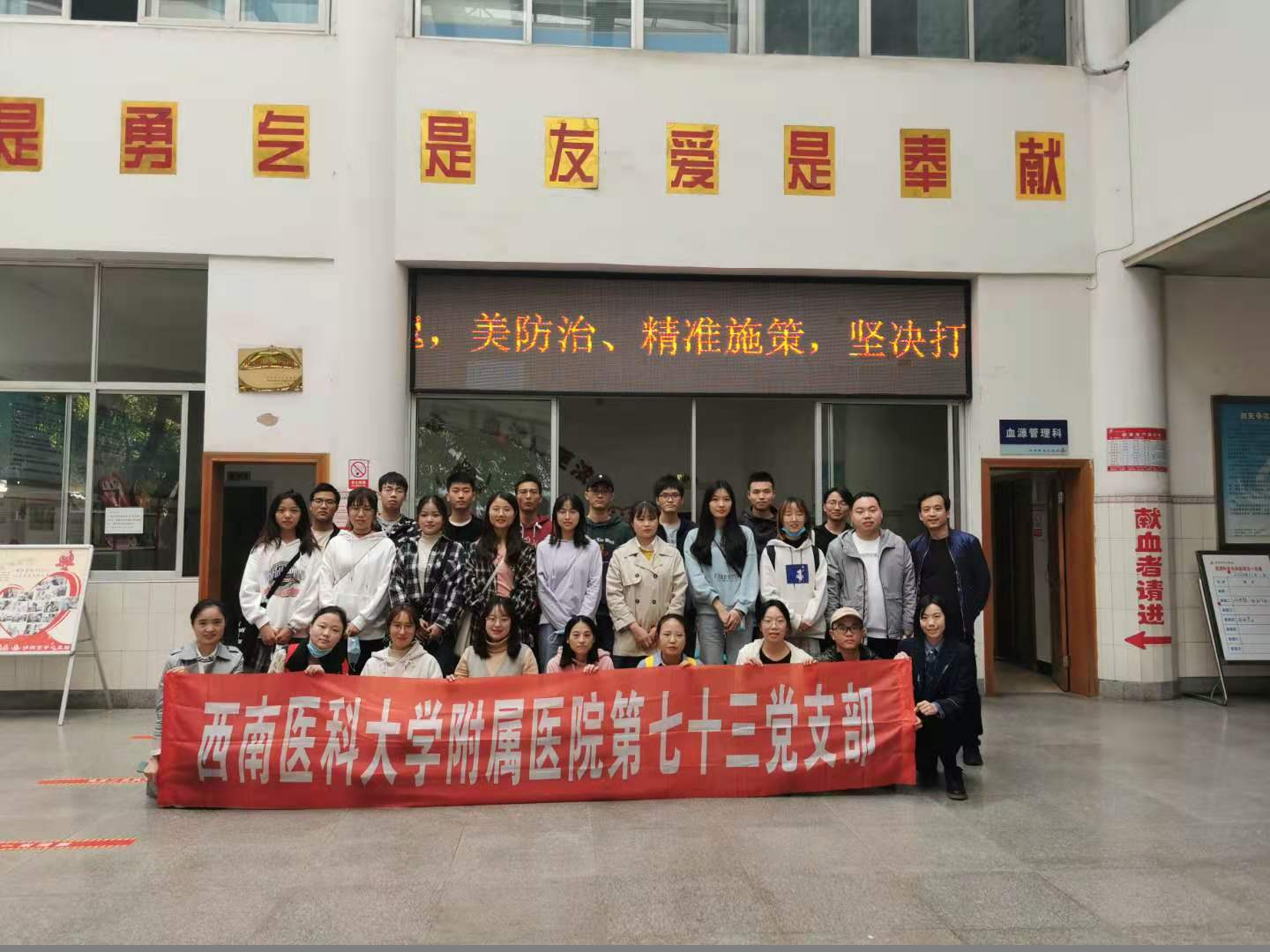 日前,医学检验系第73党支部书记张洪为带领科室部分党员职工和检验系28名学生(主要为预备党员、发展对象和入党积极分子)前往泸州市中心血站开展“无偿献血科普讲座及知识竞赛”活动。