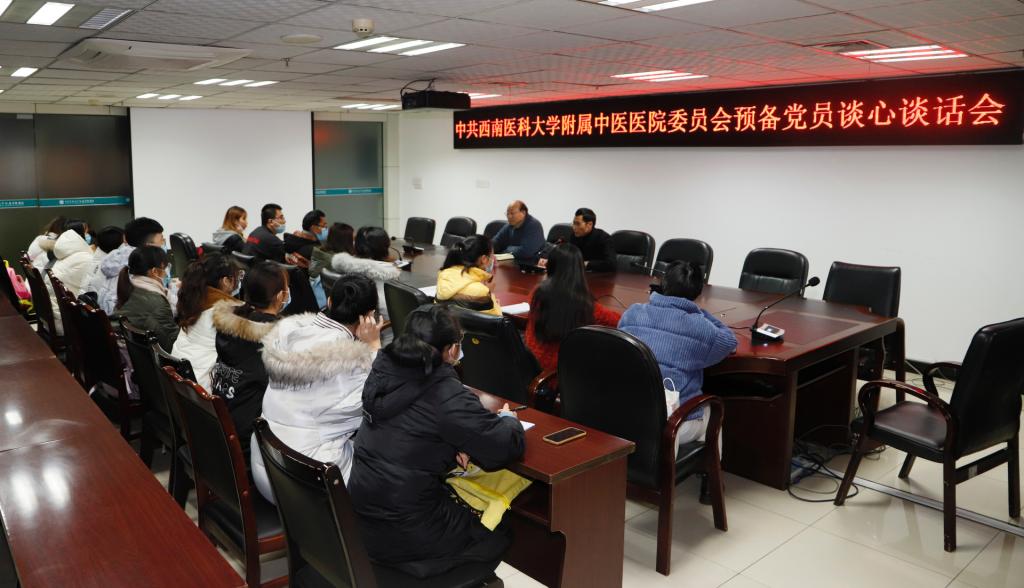 12月16日,附属中医医院党委在岐黄厅组织召开了预备党员谈心谈话会议。附属中医医院党委专职组织员王琳、李正新分别同2020年下半年新发展的19名学生预备党员、8名职工预备党员以及5名研究生预备党员进行了谈心谈话。