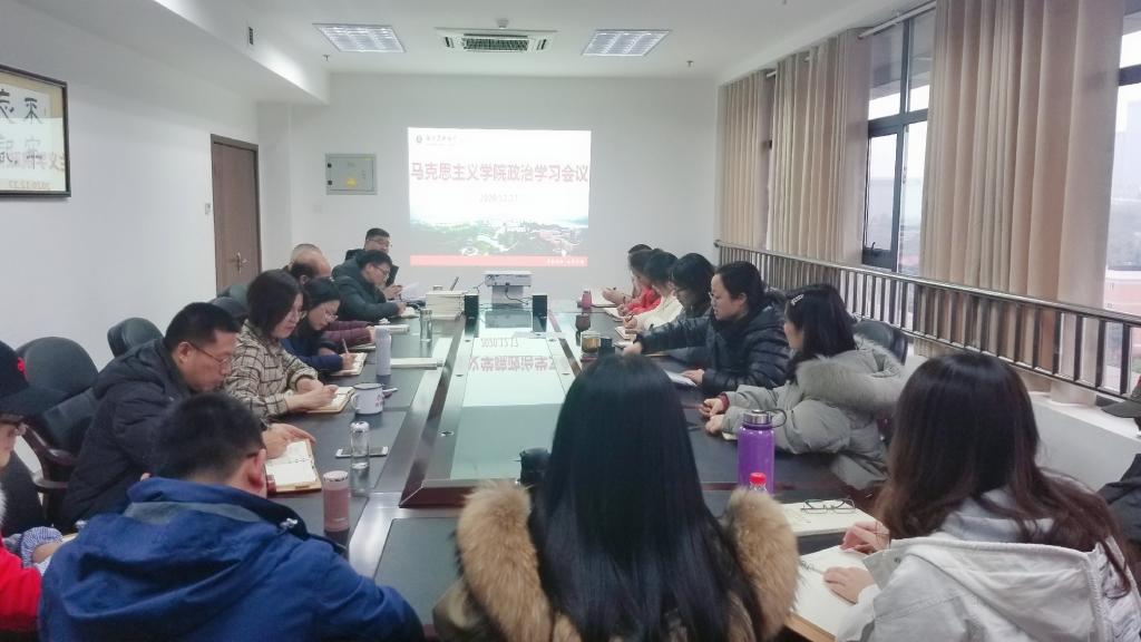 为进一步提升教师政治素养,争做新时代“六要”思政教师,马克思主义学院全体教职工于12月17日下午在德诚楼1012会议室开展集中政治学习活动,学院党总支书记张圆主持会议。