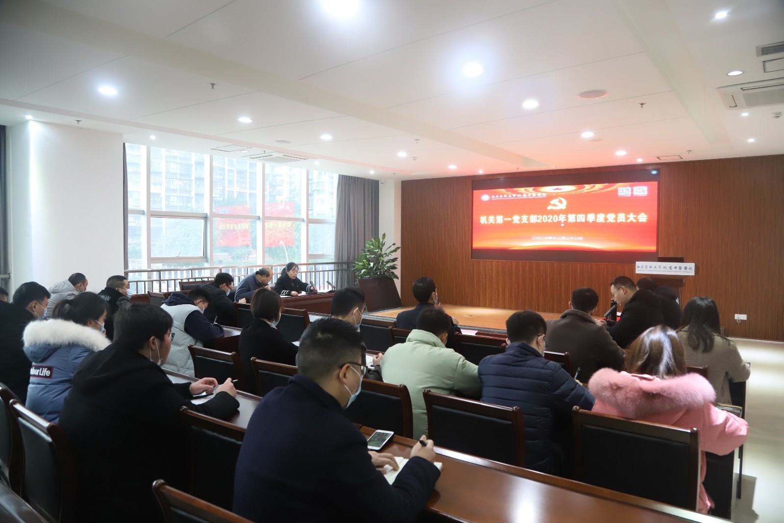 日前,附属中医医院机关第一党支部召开第四季度党员大会,党委专职组织员李正新、支部党员及入党积极分子参加了会议。会议由支部书记汪建英主持。