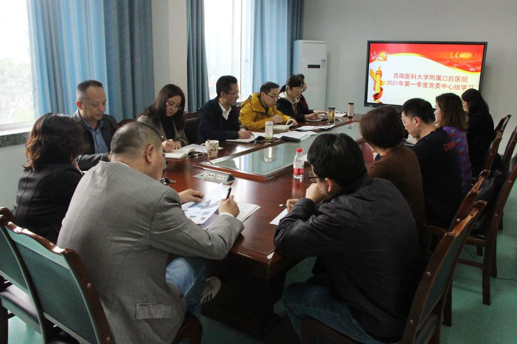 3月25日下午,附属口腔医院在五楼小会议室开展了2021年第一季度党委中心组学习,全体中心组成员参加了学习。
