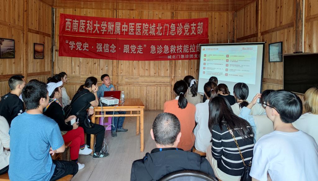 活动中,支部全体党员、团员进行了急诊急救拉练和党课分享,重温了团歌、党史等。