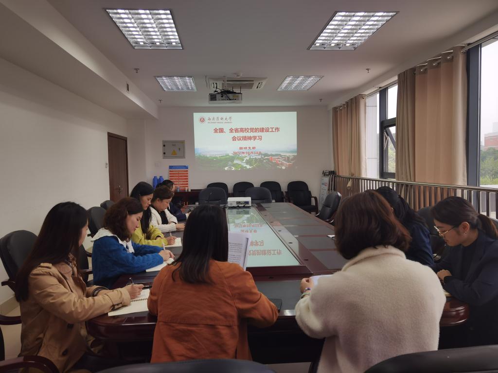 10月14日下午,国研支部全体在家成员在德诚楼311会议室开展了全国、全省高校党的建设工作会议精神专题学习。