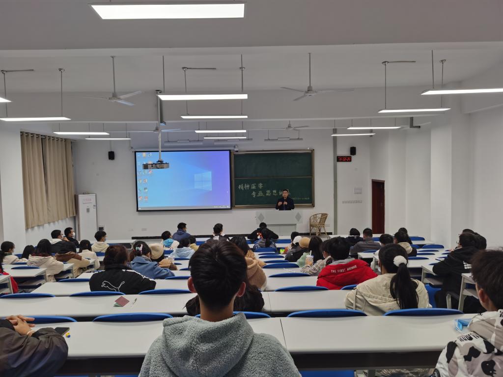 为加强2021级新生班级的学风建设,了解该专业的培养目标、内容以及专业发展前景,巩固专业思想,11月17日晚,基础医学院2021级综合办公室邀请了附属医院心身医学科主任刘可智在学海楼301教室为2021级精神医学专业作专业思想教育讲座,2021级综合办公室副主任周娅主持会议。