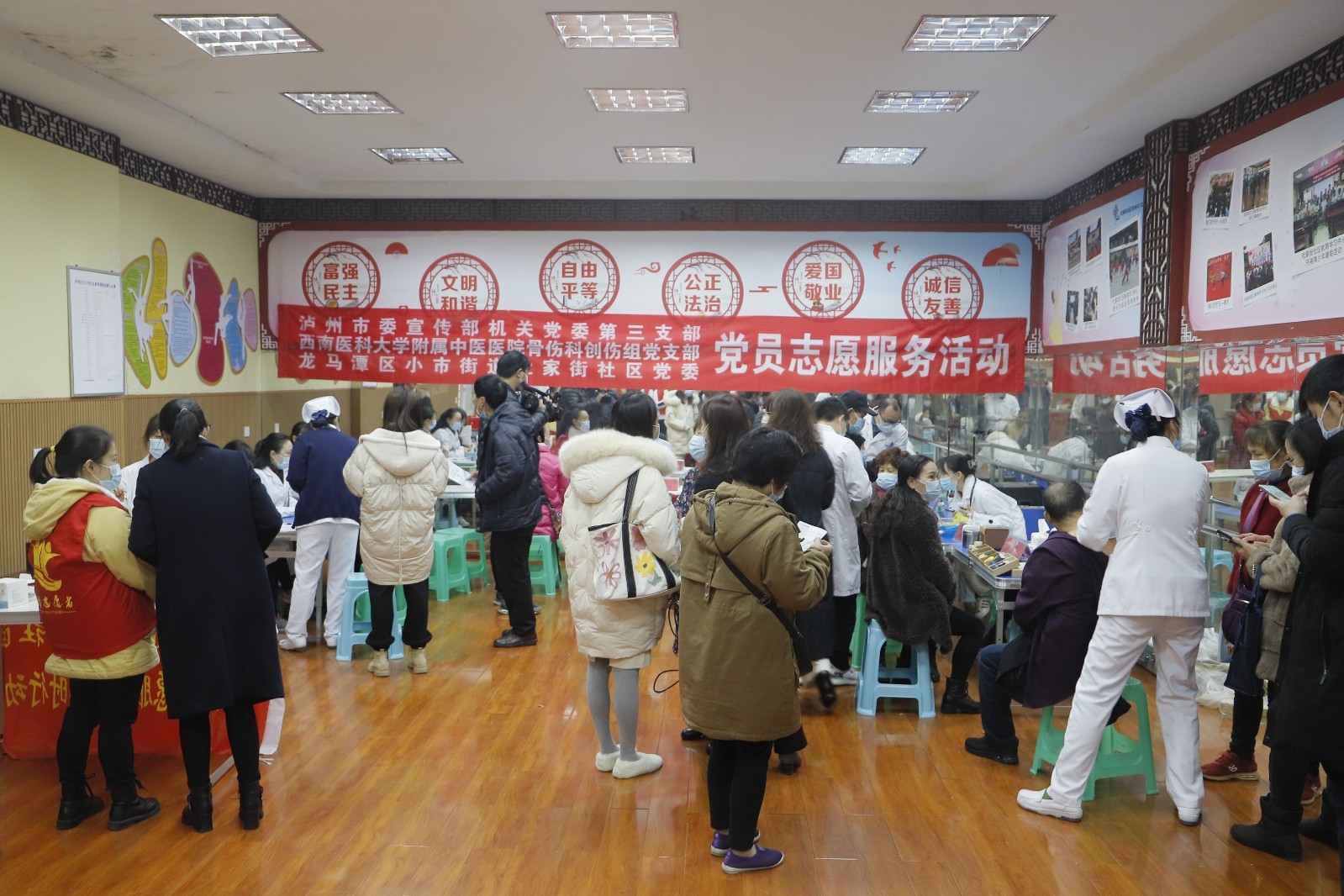 仪式后,kaiyun官方网站入口附属中医医院骨伤科创伤组党支部、心血管内科党支部、呼吸内科党支部、肾病科党支部、眼科党支部、针灸•推拿•康复科党支部医护人员为社区居民开展了义诊和健康宣教。