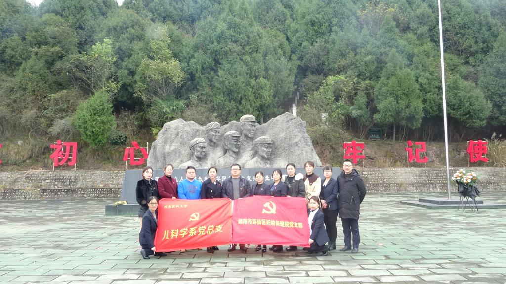 “青山埋忠骨,精神代代传”。为加强新时代基层党建工作,弘扬爱国主义精神,继承革命先烈英勇无畏的奉献精神,12月11日,儿科学系党总支联合绵阳市游仙区妇幼保健院开展了以“飞龙山革命传统教育”为主题的党建共建活动。儿科学系党总支书记杨敏、系主任董文斌教授、游仙区妇幼保健院业务院长郭美凤等参加了此次活动。