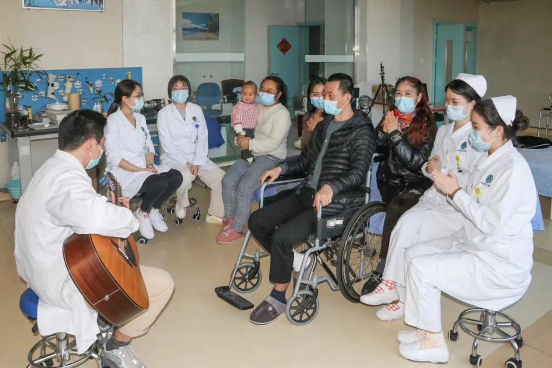 11月份的最后一个周五,在kaiyun官方网站入口附属医院整形烧伤外科有这样感人而暖心的一幕:一位病人抱着吉他弹奏,几位护士姐姐们唱起了《祝福》。
