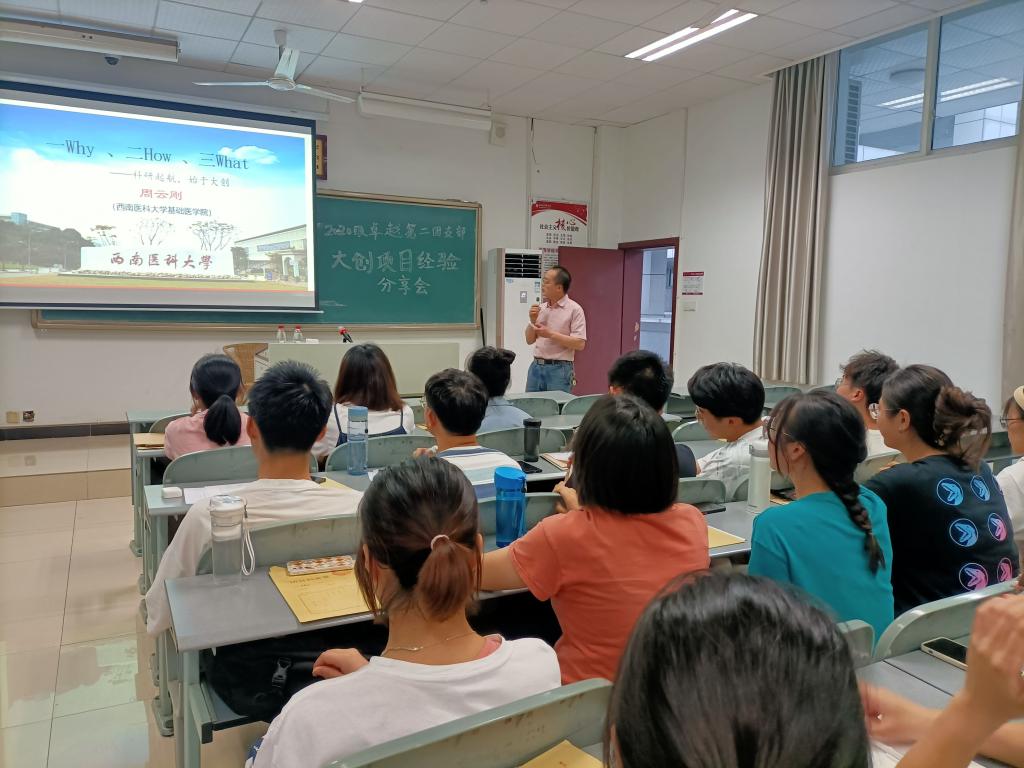 4月27日,基础医学院免疫学教师周云刚在海川楼512为2020级卓越医师班作了题为《一Why、二How、三What——科研起航,始于大创》的专题讲座。