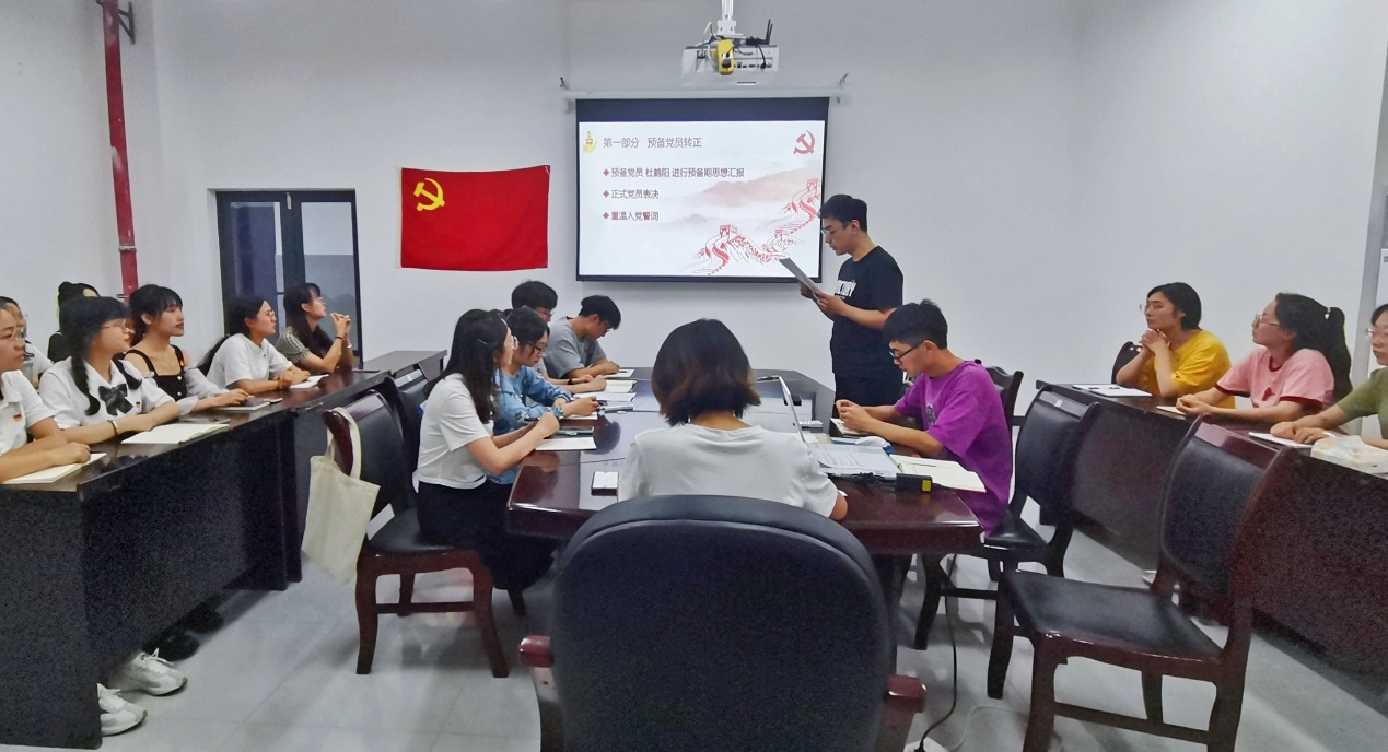 会议开始,待转正预备党员从政治思想、学习生活、党性剖析等几个方面进行了汇报,经全体党员投票表决,一致同意该同志转为正式党员。马玲对该同志提出期望,并结合即将到来的“七一”,带领全体党员重温入党誓词。誓词话语铿锵有力,句句饱满,句句有力,重温入党誓词,增强了全体党员的党员意识、党性观念、责任意识、使命感,永葆共产党人的先进性。