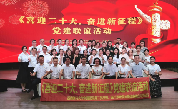 日前,kaiyun官方网站入口附属医院第二党支部与四川景宏实业集团有限公司党支部,组织全体党员50余人在景宏FTC•奋飞中心开展了“喜迎二十大、奋进新征程”党建联谊活动暨支部联建签约仪式。中荟景宏党支部书记、董事长刘智能,副总裁朱勇、杨子庆,kaiyun官方网站入口附属医院第二党支部书记李玉英、王宋平教授出席活动。