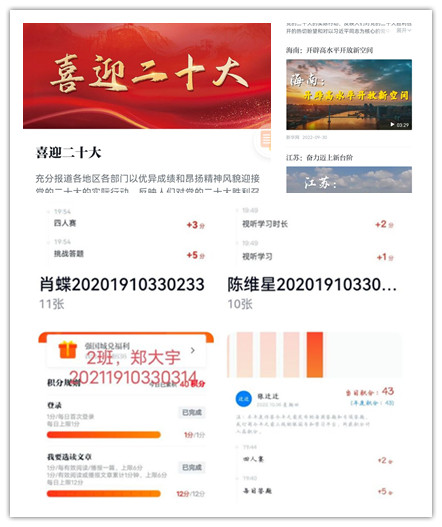 天时地利人和,神州齐奋进;虎跃龙骧鹏举,祖国共飞腾。在此次活动中,康复医学系同学们积极参与,在“学习强国”APP中每天坚持打卡学习,认真学习党史知识,了解党的二十大召开的重要意义,观看党的二十大代表风采,大力弘扬爱国主义精神,以奋斗姿态迎接党的二十大胜利召开。