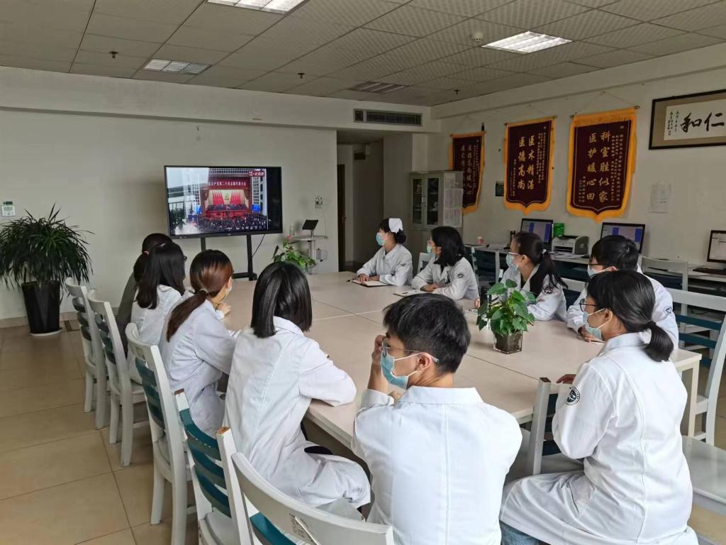 10月16日上午,中国共产党第二十次全国代表大会在北京隆重开幕。按照学校党委统一安排部署,医院党委书记李志、院长刘建到学校集中收听收看了中国共产党第二十次全国代表大会开幕会。医院党委组织了全体在家院领导、职能部门负责人代表、临床科室负责人代表、党支部书记代表、教师代表等在第二住院大楼1号会议室集中收听收看了中国共产党第二十次全国代表大会开幕会。除此之外,全院各党支部也组织了本支部党员及群众收听收看中国共产党第二十次全国代表大会开幕会。