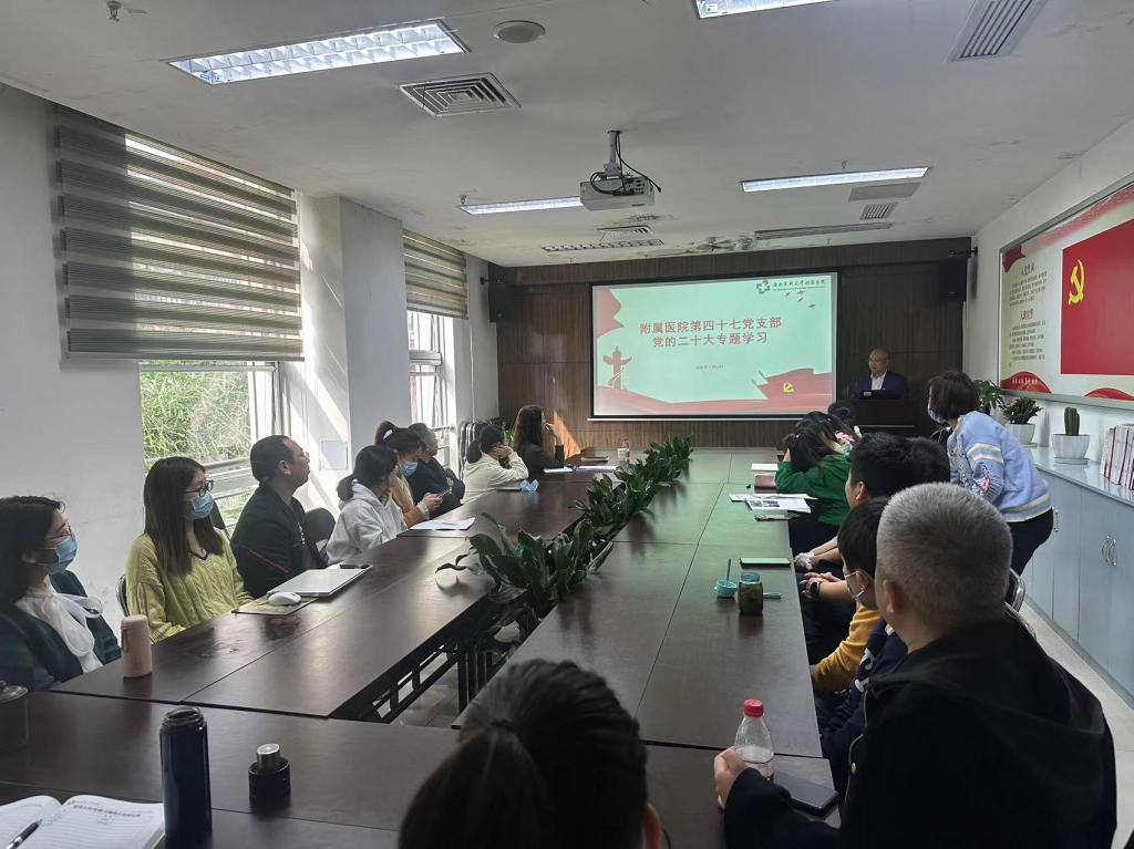吕春以“锚定目标 勇毅前行 奋进新时代”为题从党的二十大基本情况、党的二十大报告主要内容、深入贯彻落实党的二十大精神等方面进行宣讲。吕春指出:党的二十大是在全党全国各族人民迈上全面建设社会主义现代化国家新征程、向第二个百年奋斗目标进军的关键时刻召开的一次十分重要的大会,全体党员要深入学习领会、全面贯彻落实,将党的二十大精神落实到工作实践中,推动教育教学和临床工作再上新台阶。同时要求,各支部要精心组织传达学习,充分利用组织生活、专题研讨会、主题党日、“三会一课”、座谈讲座等多种方式,认真研读,全面深入学习党的二十大精神,做到学深悟透、入脑入心。