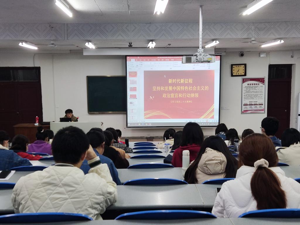 为深入学习贯彻党的二十大精神,11月18日晚,基础医学院2020级临床医学专业学生党支部在忠山2阶教室开展学习党的二十大精神专题党课。本次党课由马克思主义学院教师唐义杰主讲,20级临床学生党支部书记阳永连主持,支部全体党员、预备党员参加。