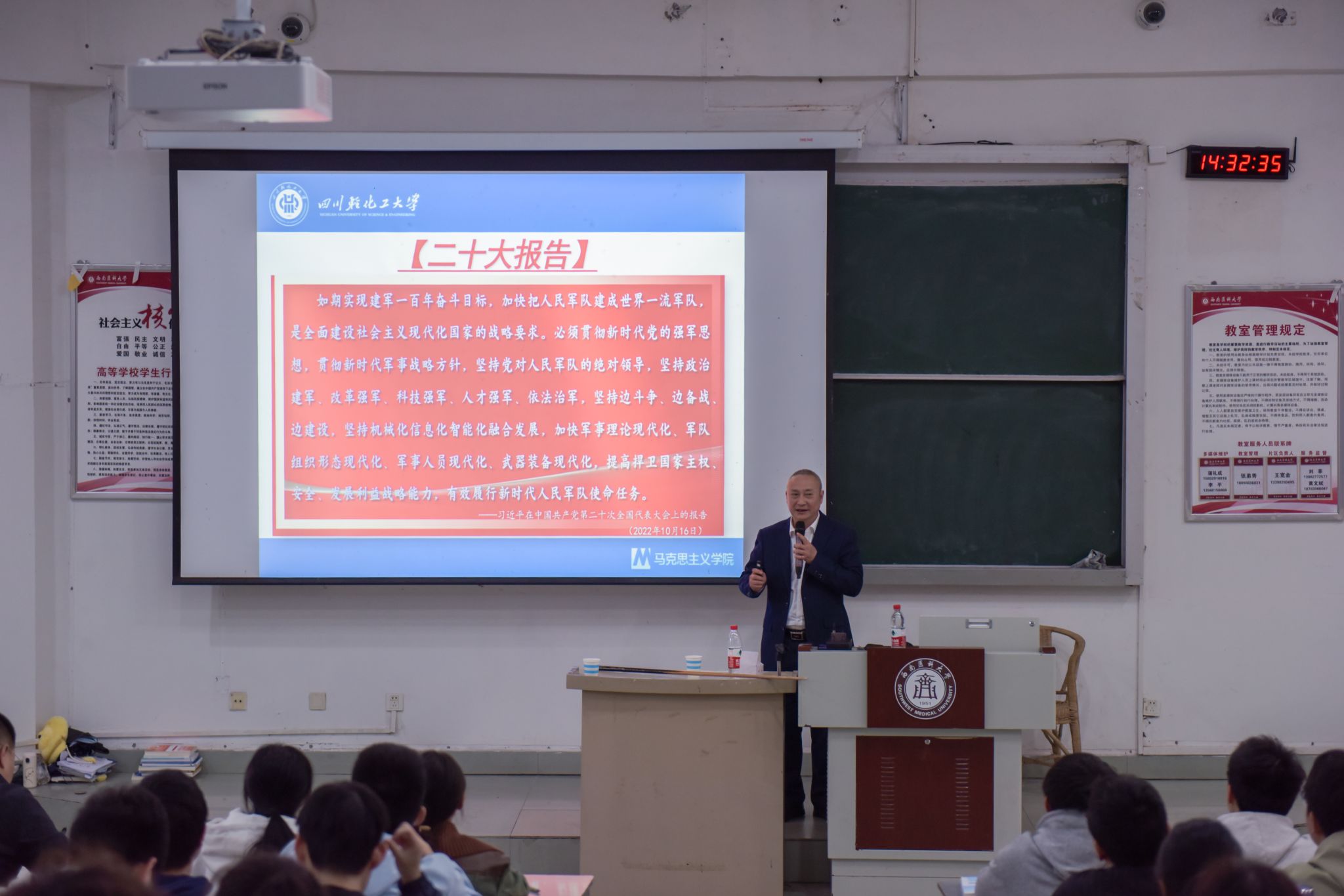为深入学习贯彻习近平总书记关于加强全民国防教育的重要指示精神,全面贯彻党的教育方针、新时代军事战略方针和总体国家安全观,紧紧围绕落实立德树人根本任务和强军目标根本要求,深化军事课教学改革,提高军事课教学质量,推动军事课教学创新与发展,按照省教育厅统一安排,kaiyun官网于3月20日下午在城北校区鸿文楼开展军事课骨干教师巡回授课及教学展示活动。四川省军事课骨干教师、四川轻化工大学马克思主义学院党委副书记、纪委书记李成学教授到校授课。学校武装部·保卫处、马克思主义学院教师代表、学生代表300余人到场聆听。巡回授课活动由kaiyun官网马克思主义学院副院长赵微主持。