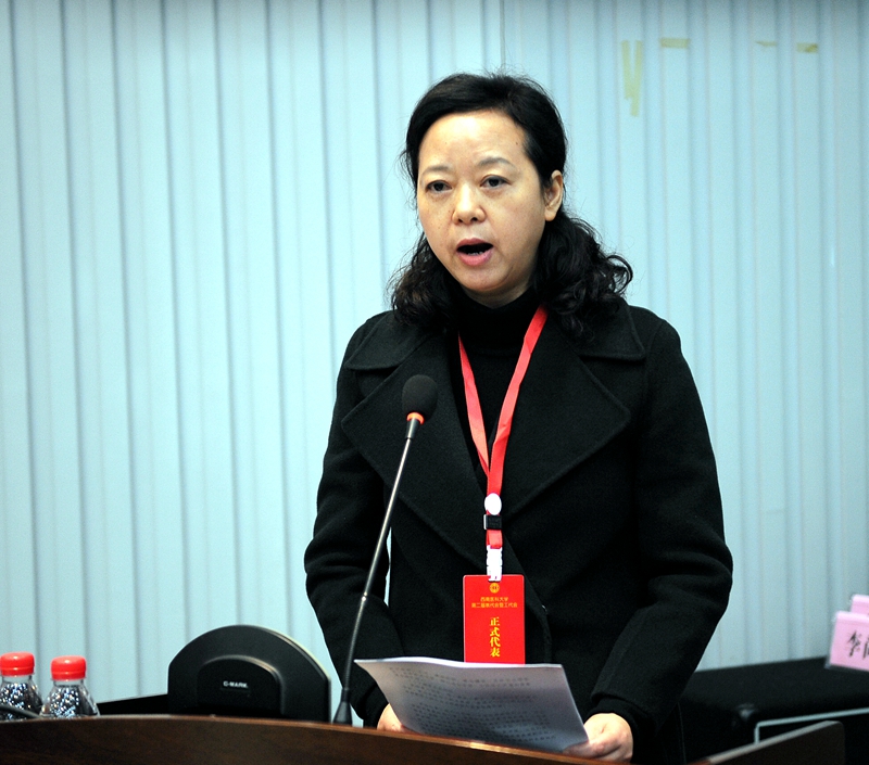 工会副主席陈先红以《围绕中心 服务大局 凝聚力量 为实现学校“136”发展战略目标而努力奋斗》为题向大会作教代会、工会工作报告。