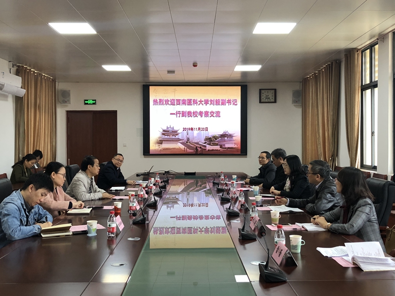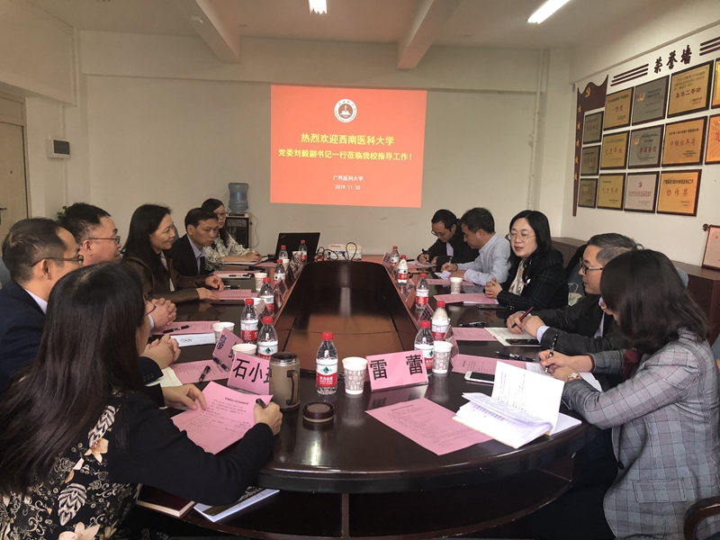 在广西医科大学,刘毅一行与该校学生工作部(处)长闵晓阳、副部(处)长石小玲、廖钊,教务处副处长赵同领、招生就业处副处长廖江进行了座谈。双方就招生就业工作、学生教育管理工作、专业建设工作与教学改革工作等方面进行了探讨。