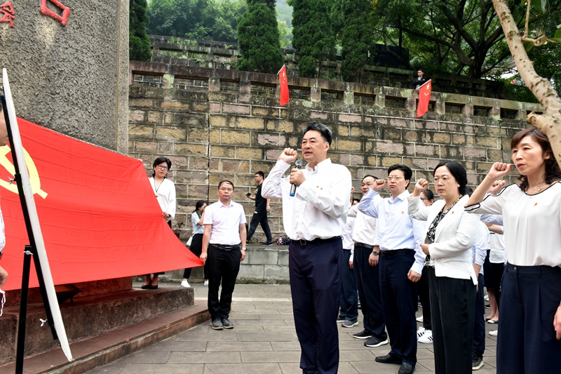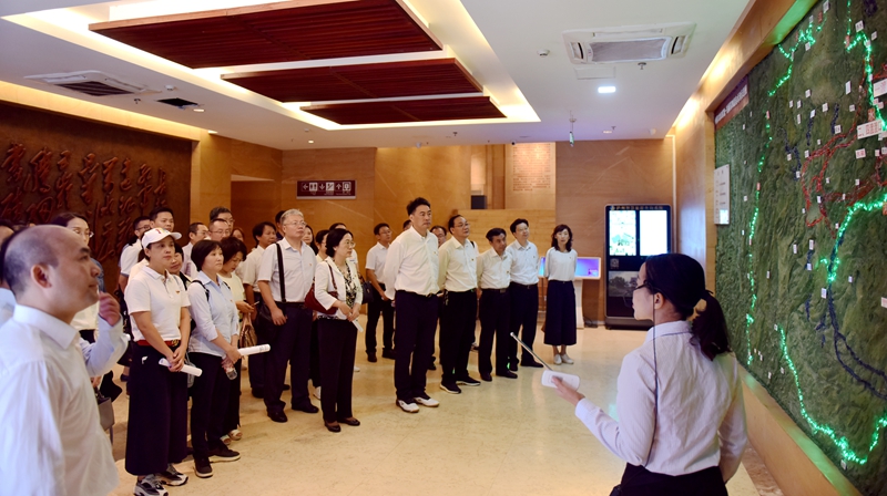 四渡赤水战役,是红军长征中最惊心动魄、精彩绝伦的军事行动,是红军历史上以少胜多、变被动为主动的光辉战例,是中国革命走向胜利的新起点。地处川黔交界的古蔺县太平镇,则是红军长征四渡赤水的主要转战地。廖斌一行首先抵达太平渡渡口,在解说员的讲解下重温了四渡赤水的英勇壮举后,全体党员领导干部在太平渡渡口纪念碑下,面对中国共产党党旗,右手握拳,由廖斌书记领誓,一起重温了入党誓词。随后,全体校处级领导干部分两组参观了四渡赤水太平渡陈列馆,聆听了井冈山红军后代胡敬华老人讲述红军长征四渡赤水的故事。最后,大家共同参观了毛泽东四渡赤水纪念馆、战地黄花馆、红军总司令部、红军医院、长征街等红军革命遗址和纪念场馆。通过瞻仰先烈们的事迹图片和实物展品,聆听先烈们的英勇事迹和革命历程,再现了当年红军战士浴血奋战的悲壮场面和四渡赤水的雄伟壮举,让全体人员深切感受到革命先烈英勇不屈、不怕牺牲、矢志奋斗的战斗精神和革命情怀。