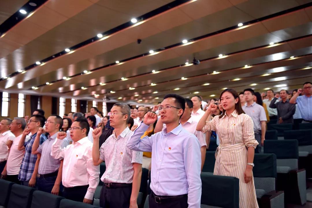 在这纪念中国共产党成立98周年的神圣时刻,与会人员一起面对党旗,再次重温入党誓词,许下每一个共产党人的庄严承诺。