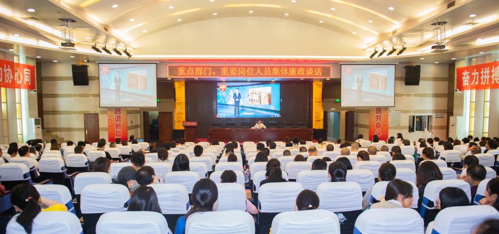 为加强全面从严治党的政治要求,促进党风廉政建设,实践监督执纪“四种形态”,kaiyun官方网站入口附属医院于9月29日下午,在忠山院区学术报告厅,组织重点部门、重点岗位200余人,开展集体廉政约谈会。