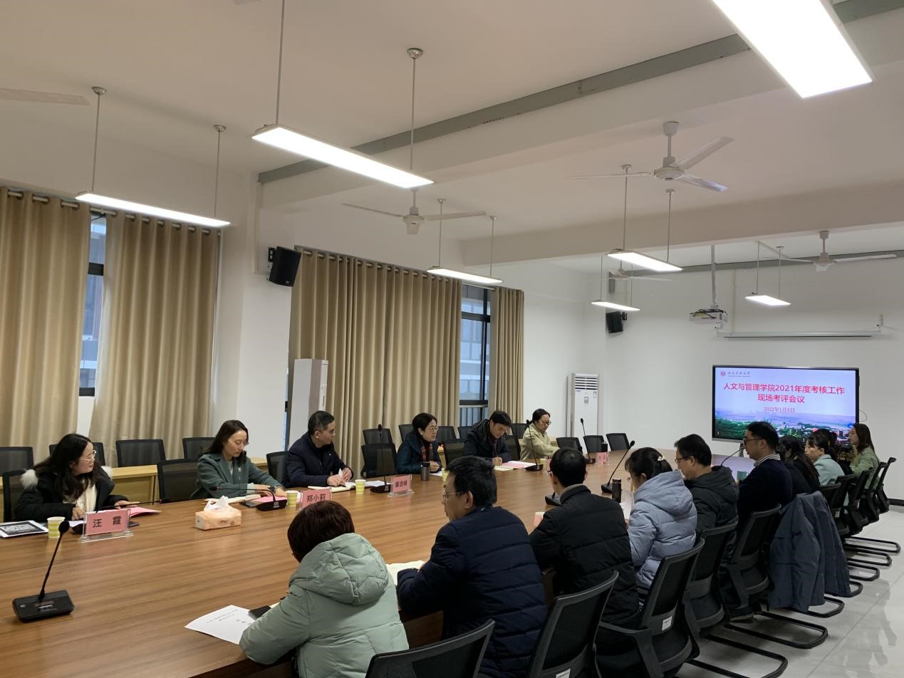 1月5日,kaiyun官方网站入口第四考评小组组长、学校党委副书记刘毅一行到人文与管理学院开展2021年度考核工作,听取学院2021年工作汇报。人文与管理学院处科级干部、党支部书记、教研室和实验室负责人、高级职称代表、民主党派代表、教代会及工代会代表等32人参会。会议由刘毅主持。
