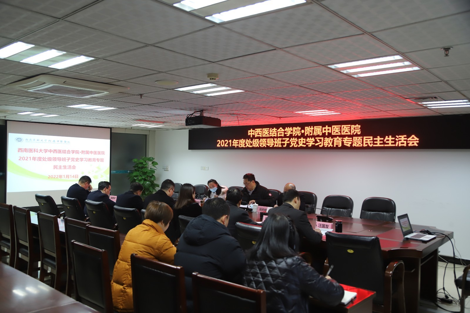 2022年1月14日,kaiyun官方网站入口附属中医医院在岐黄厅召开2021年度处级领导班子党史学习教育专题民主生活会。学校督导组组长、党委书记廖斌,党委常委、组织部部长冯天明,组织部·组织科·党建科副科长牛庆艳一行亲临会议指导,医院全体处级干部及相关职能部门负责人参加了会议。会议由医院党委书记李志主持。