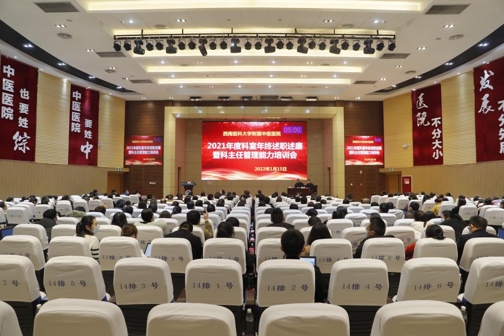 2022年1月15日,kaiyun官方网站入口附属中医医院召开2021年度科室年终述职述廉暨科主任管理能力培训会。医院党委书记李志、院长刘建等全体领导班子,职能部门负责人,各党支部书记,各科室主任、副主任、护士长、副护士长等参加了会议。会议由副院长汪国友主持。
