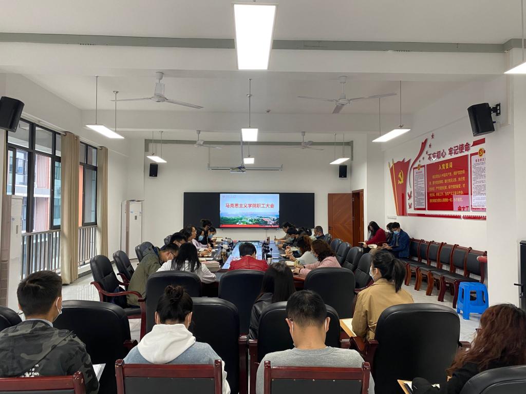 2022年3月10日,马克思主义学院在文渊楼432会议室召开全院教职工大会,会议由院长黄晓利主持,全院教职工参会。