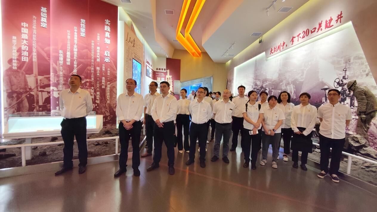 党员们跟随讲解员的脚步,走进“气韵圣灯”展厅、原炭黑车间工业遗址、最光荣的火房、四川石油会战史馆、隆10井,也走进中国油气工业建设的厚重历史之中,深刻地感受到老一辈油气工作者攻坚克难、甘于奉献的苦干实干精神,感受到一代代“石油人”传承“铁人精神”,接续奋斗,数十载栉风沐雨,几十年筚路蓝缕,用血泪和汗水开创了新中国炭黑工业的史诗。