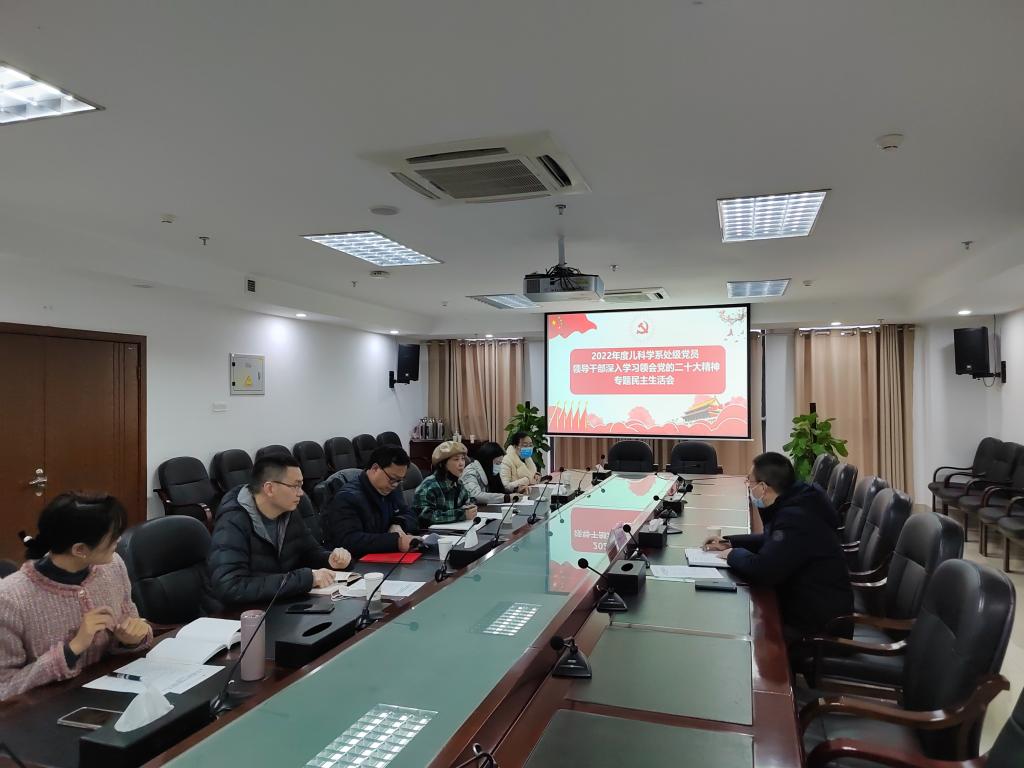 2022年12月29日下午,儿科学系在城北校区德诚楼521会议室,召开“2022年度处级党员领导干部深入学习领会党的二十大精神专题民主生活会”。临床医学院•附属医院督导组•医院副院长万居易、儿科学系处科级干部、系党总支委员、教职工代表参加会议。会议由系党总支书记杨敏主持。