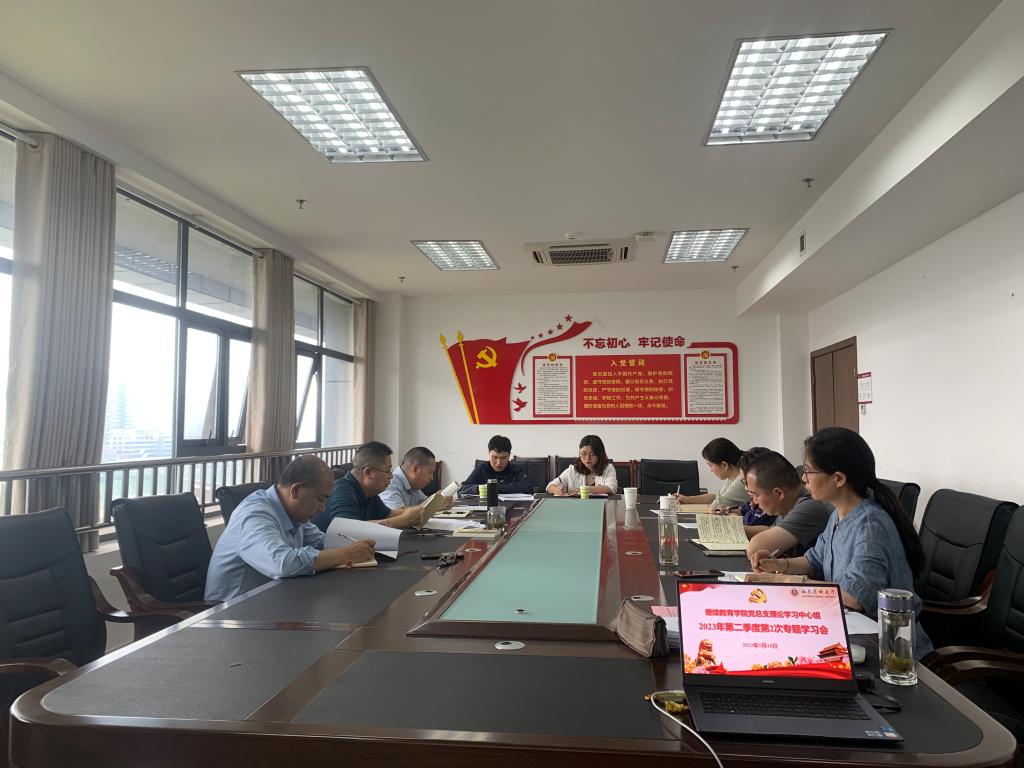 5月18日,继续教育学院党总支理论学习中心组在德诚楼1012会议室召开2023年第二季度第2次集中学习研讨会。本次集中学习研讨的主题为“习近平新时代中国特色社会主义思想的世界观和方法论”,学院理论学习中心组全体成员参加学习研讨,学校第九督导组组长、党政办副主任裴傲秋,联络员吴杨昊天列席了本次学习研讨会。会议由学院党总支书记陈忠健主持。