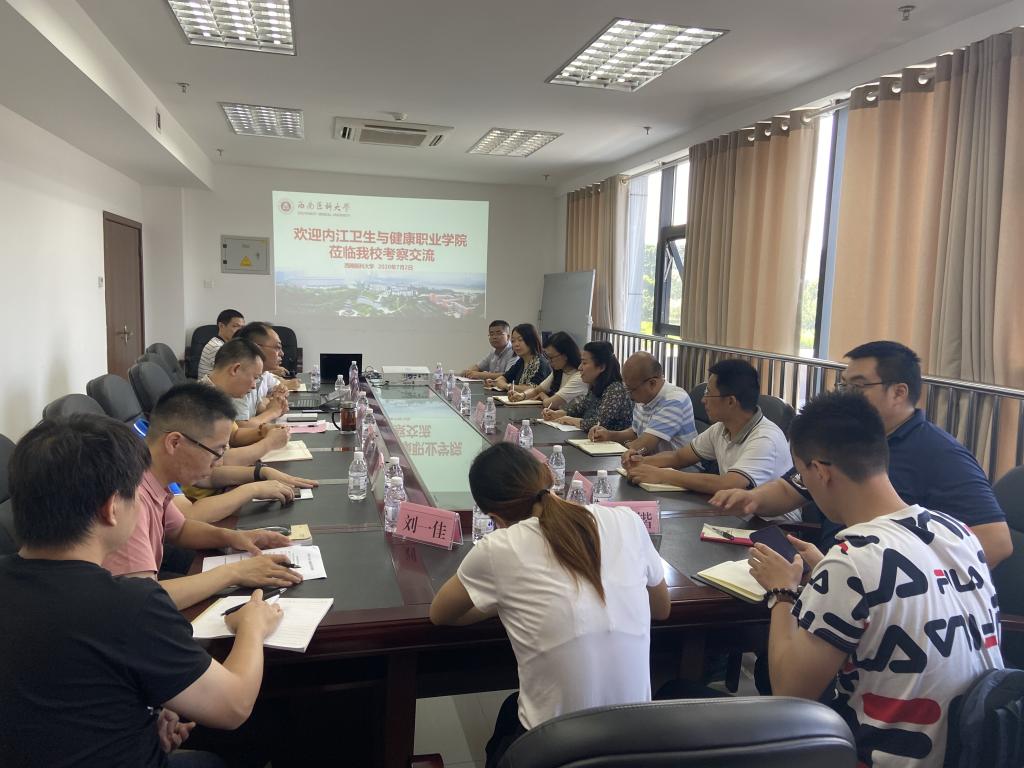 7月2日上午,内江卫生与健康职业学院教务处副处长张珍等一行14人,来kaiyun官网进行考察与学习交流。学校教务处副处长黎靖,护理学院、公共卫生学院、基础医学院、药学院以及康复医学系相关领导参加交流座谈。